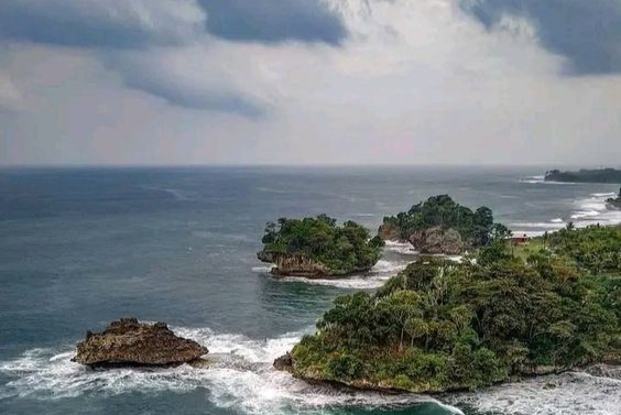 Ciri khas Pantai Madasari adalah keberadaan pulau - pulau karang kecil yang ada di lautan.